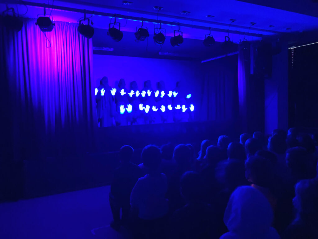 Schön, dass Du Dich für unser Fach interessierst. Hier findest Du verschiedene Inhalte zu unserem Fach. Auf den Bildern kannst Du Schülerarbeiten und unsere Schüler*innen bei einer aktuellen Probe für ein Theaterstück sowie bei einer Theateraufführung sehen.